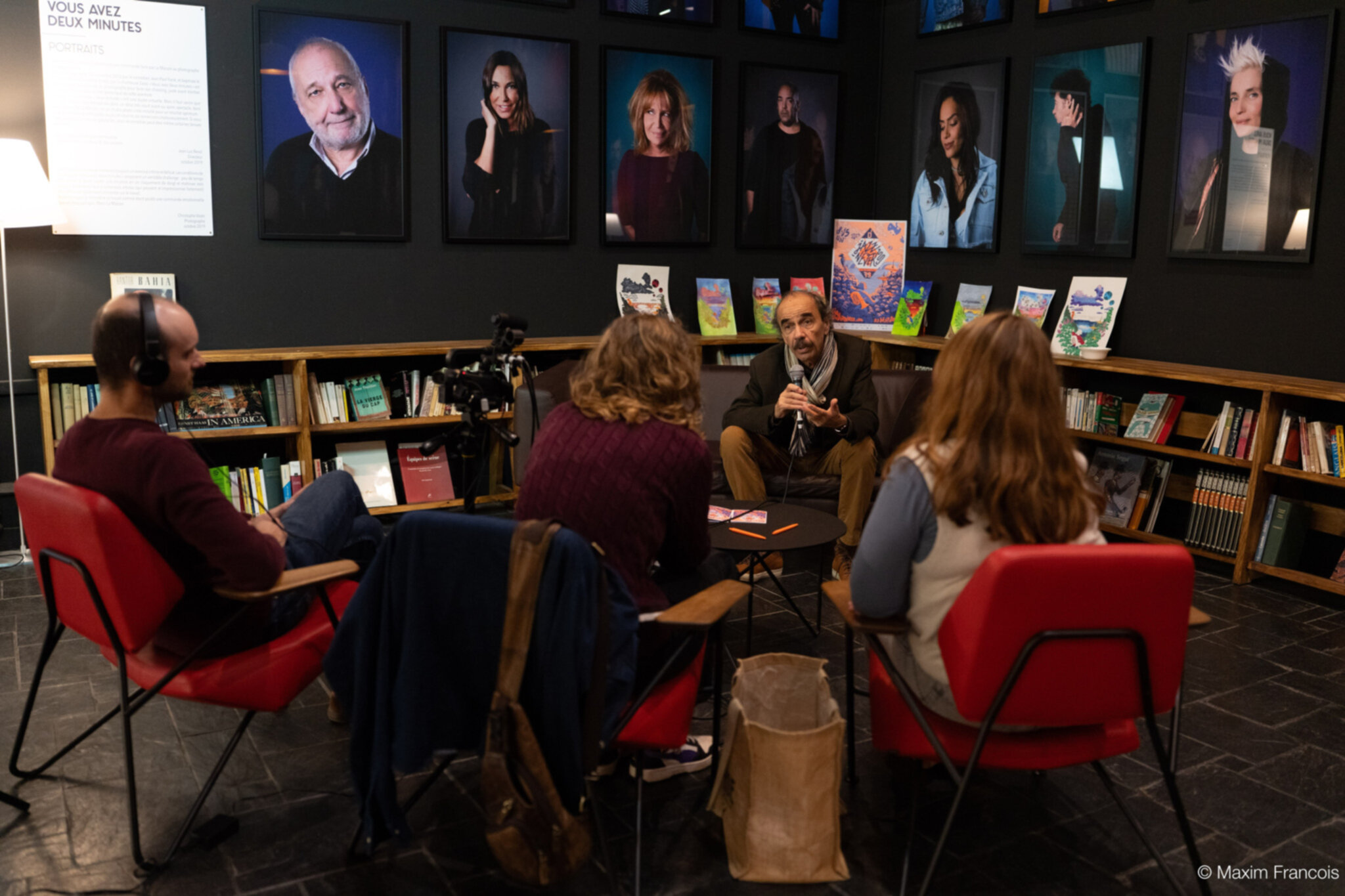 Tout juste arrivés et installés dans la bibliothèque de La Maison, la journée a débuté sur les chapeaux de roues avec la captation du concert de Meije, dédié au public scolaire. Ils ont ensuite pu rencontrer les trois artistes et leur poser des questions sur leur projet. Puis, les interviews se sont enchainées : graphisme, direction, production, technique, communication... tous les métiers du festival sont passés sous l’œil aiguisé de leur caméra !