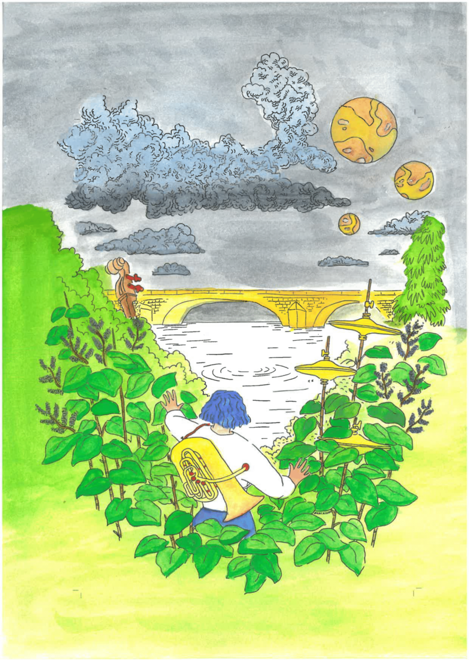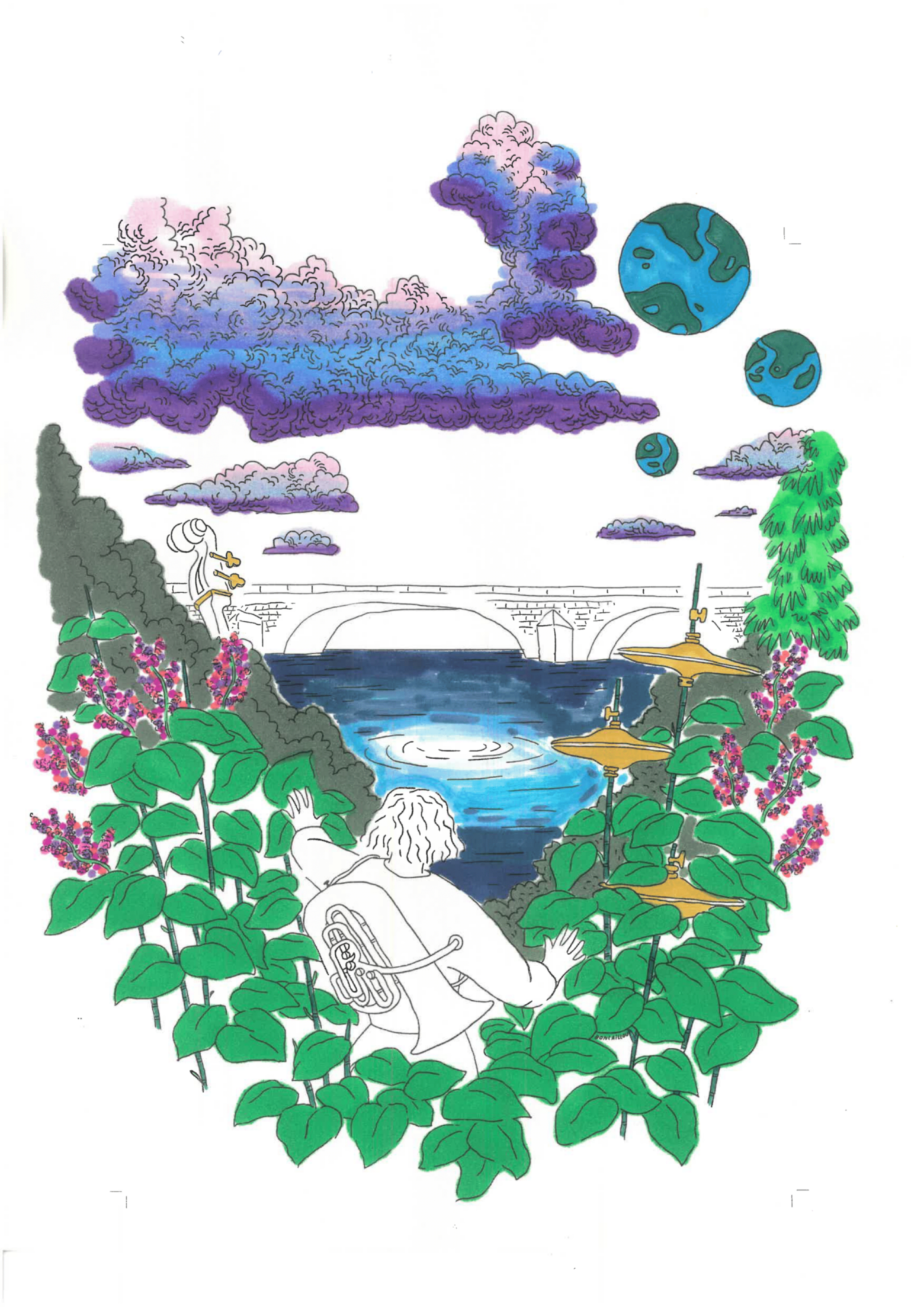 L’objectif de ce moment : s’en approprier les moindres détails afin de pouvoir ensuite proposer leur propre version du visuel de la 39ᵉ édition. Les élèves ont ainsi écouté la playlist du festival tout en redessinant l’affiche imaginée par Boncaillou, graphiste du D’Jazz Nevers Festival.