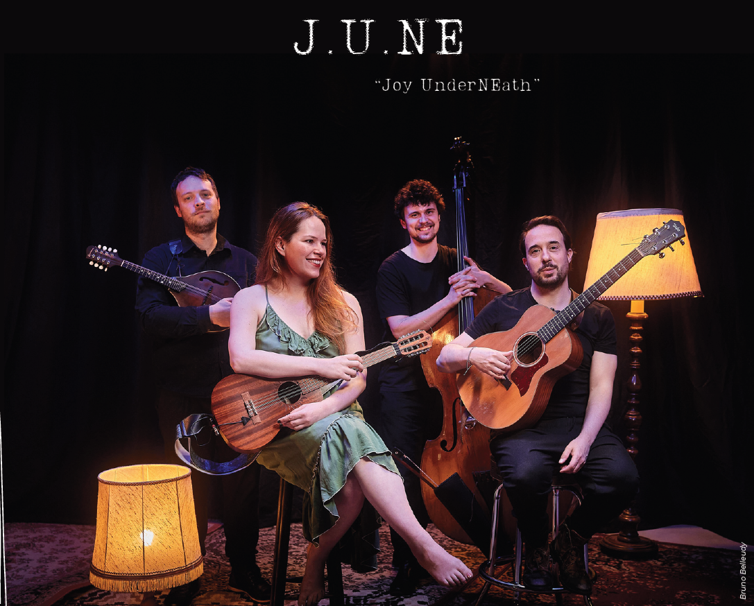 J.U.NE est un le nouvel ensemble de la chanteuse Célia Forestier. Après les folies électriques de « Six-Ring circus » et le jazz chambriste de « Komorebi » la chanteuse explore un nouvel univers entièrement acoustique entre folk délicat et jazz intrépide. Les quatre improvisateurs équilibristes proposent des “chansons à surprise” où les cordes s’entremêlent ; essaim de voix s’échappant du bois qui résonne...