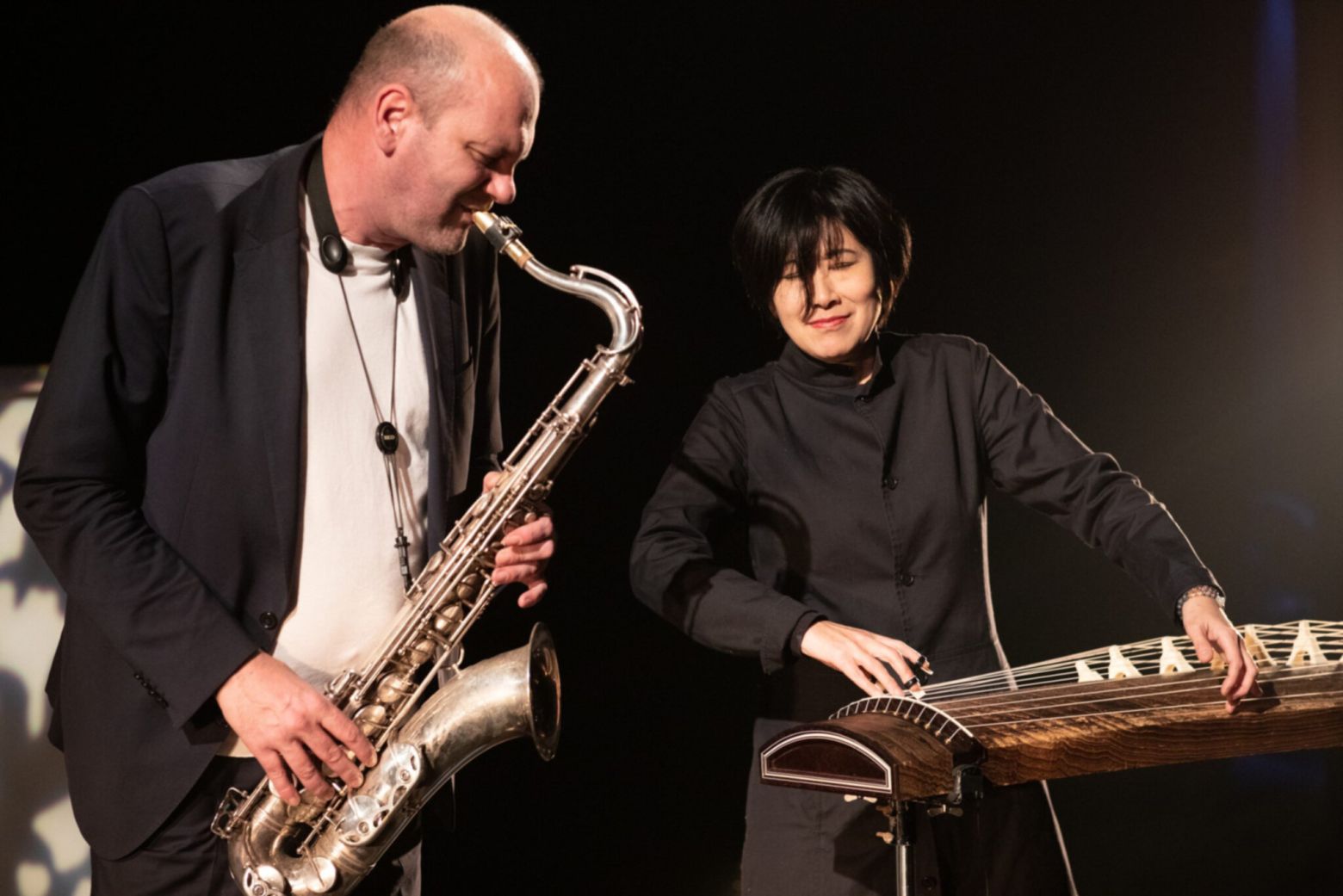 Les mélopées inspirées du saxophone viennent ainsi flirter avec l’envoûtante élégance du koto*, tandis que la musique écrite dialogue avec l’improvisation en toute liberté. A la vue de la brillante carrière des deux protagonistes, nous comprenons bien pourquoi l’alchimie qui ressort de leur rencontre paraît être une évidence.
